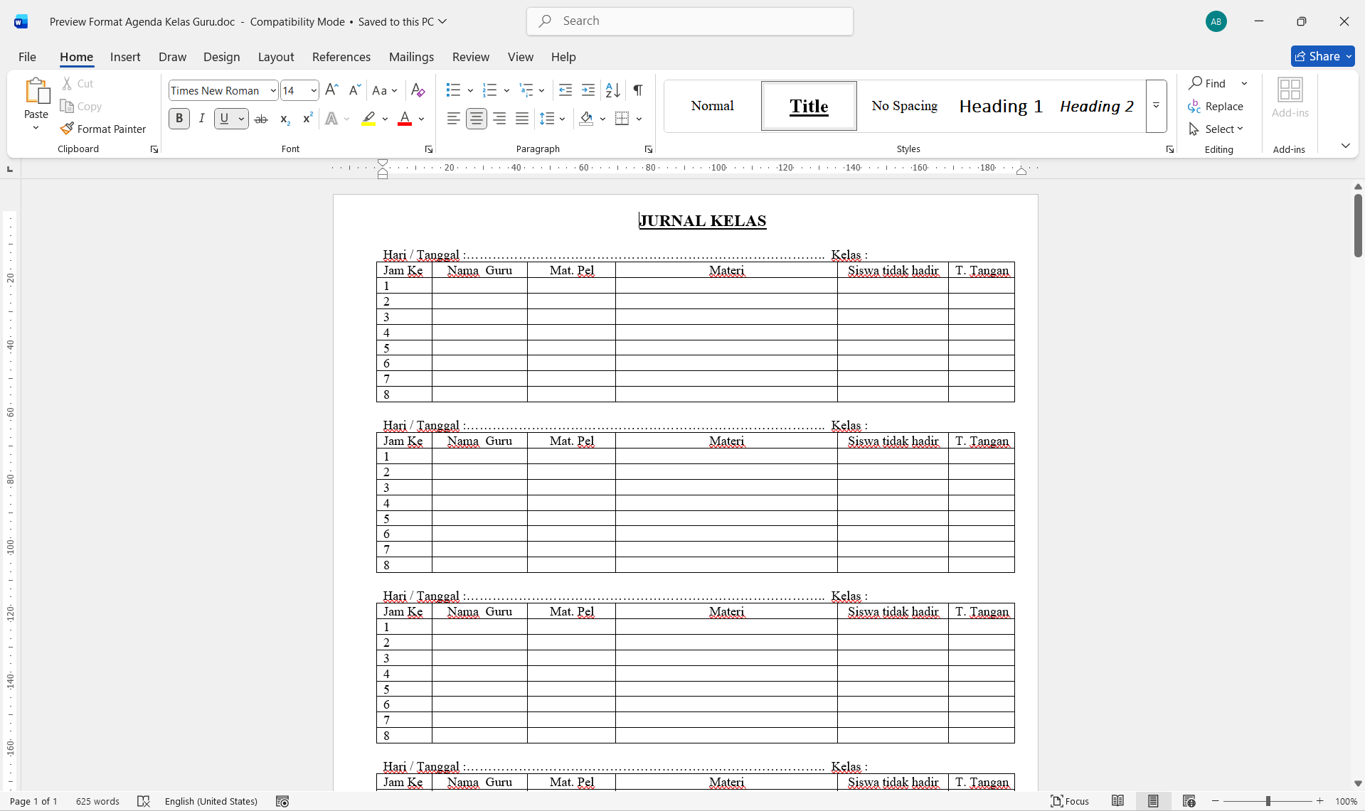 Download Format Agenda Kelas Guru